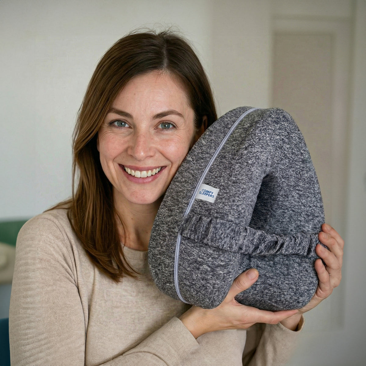 Most knee pillows shift during the night or lose support after a few hours. You adjust. You wake up. Comfort doesn't last. Our Alignment Pillow is designed differently. The optional adjustable strap helps keep it positioned between your legs, even if you move in your sleep. While the high-density memory foam is made to maintain its shape over time, not just for the first part of the night. No constant repositioning. No flattened pillow by morning. Just steady support designed for side-sleeping comfort.