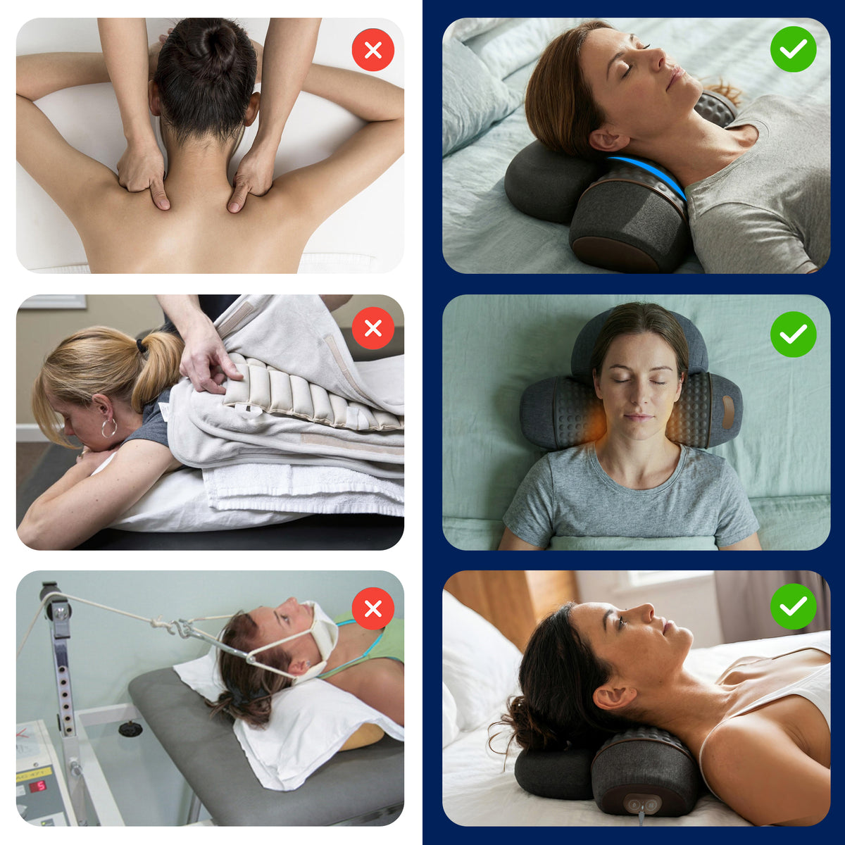 So, instead of juggling appointments, pills, or bulky devices, this traction massager pillow fits seamlessly into your routine. Just lie back, relax, and let it do the work - whether it’s after a long workday, screen time, or travel.